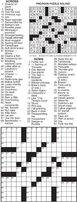tableland Crossword Clue - Wordplays.com tableland Crossword Clue ; PLATEAU ; Advertisment ; Andean tableland. crossword-solver.io › clue › statement-after-someStatement After Some Deliberation Crossword Clue Nov 27, 2022 · The crossword clue Statement after some deliberation with 15 letters was last seen on the November 27, 2022. We think the likely answer to this clue is IVEMADEUPMYMIND . Below are all possible answers to this clue ordered by its rank. › word › tormentTORMENT crossword clue - All synonyms & answers All solutions for "torment" 7 letters crossword answer - We have 4 clues, 131 answers & 299 synonyms from 3 to 17 letters. Solve your "torment" crossword puzzle fast & easy with the-crossword-solver.com